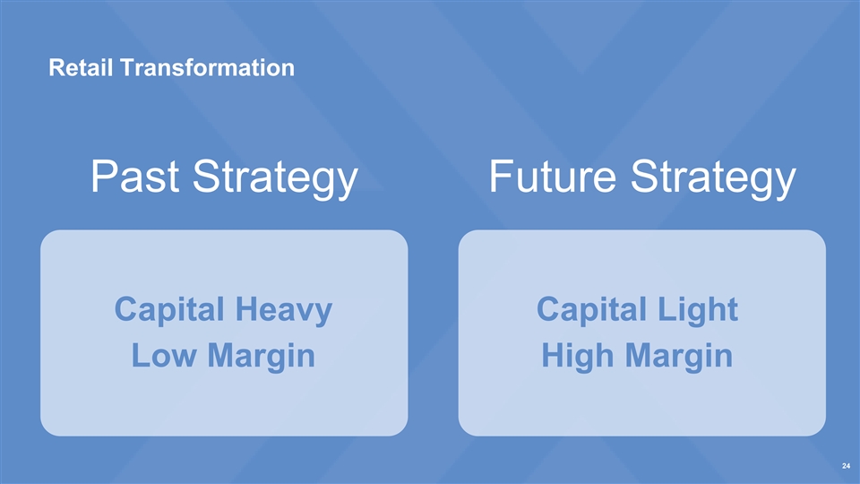 Retail Transformation Past Strategy Future Strategy Capital Heavy Capital Light Low Margin High Margin 24