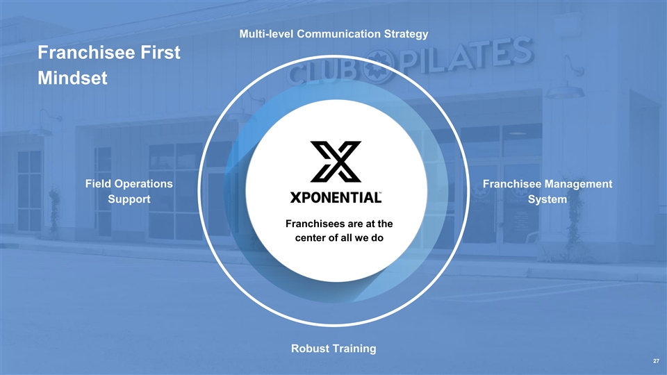 Multi-level Communication Strategy Franchisee First Mindset Field Operations Franchisee Management Support System Franchisees are at the center of all we do Robust Training 27