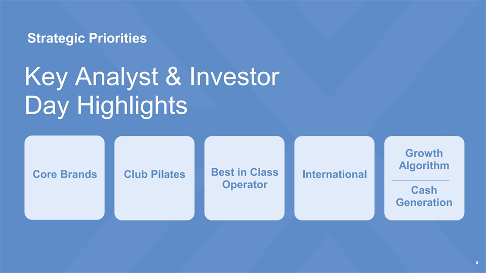 Strategic Priorities Key Analyst & Investor Day Highlights Growth Algorithm Best in Class Core Brands Club Pilates International Operator Cash Generation 6
