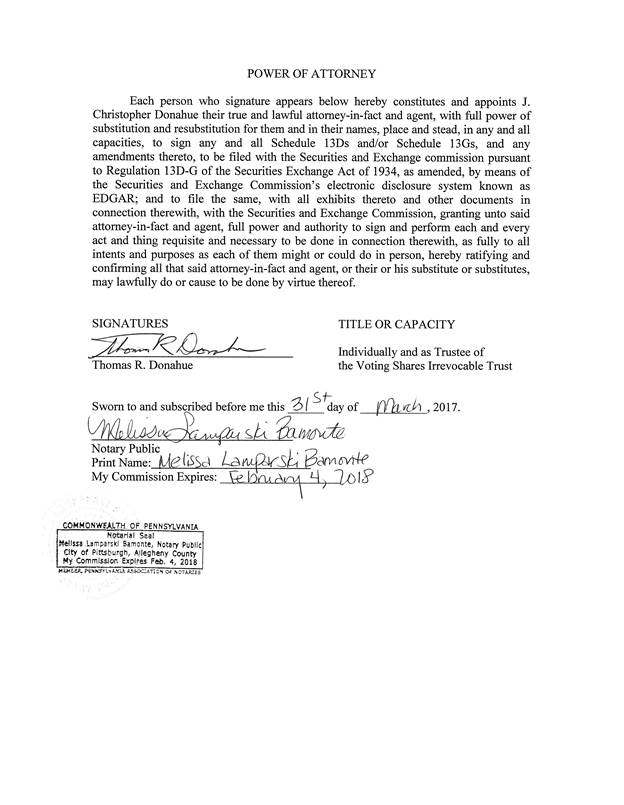 | Name/Title | Thomas R. Donahue, individually and as Trustee of Voting Shares Irrevocable Trust. |